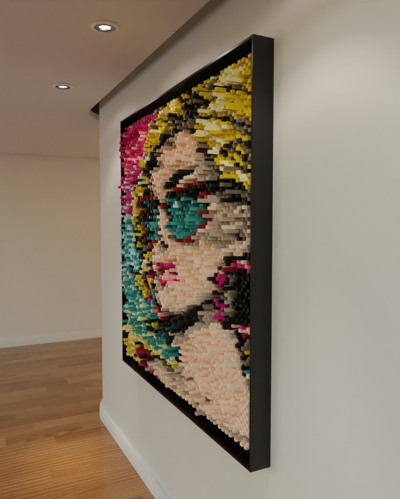 “ALLURE ÉLECTRIQUE” embodies a captivating energy – a perfect blend of charm, provocation, and a touch of mystery. Her tinted sunglasses hide eyes that seem to pierce through souls, while her bold red lips and golden curls exude absolute confidence. She knows she’s irresistible, and each vibrant color around her amplifies her magnetic aura. Like lightning in a calm sky, she draws you in, her presence radiating a quiet, insolent power that dares anyone to look away.